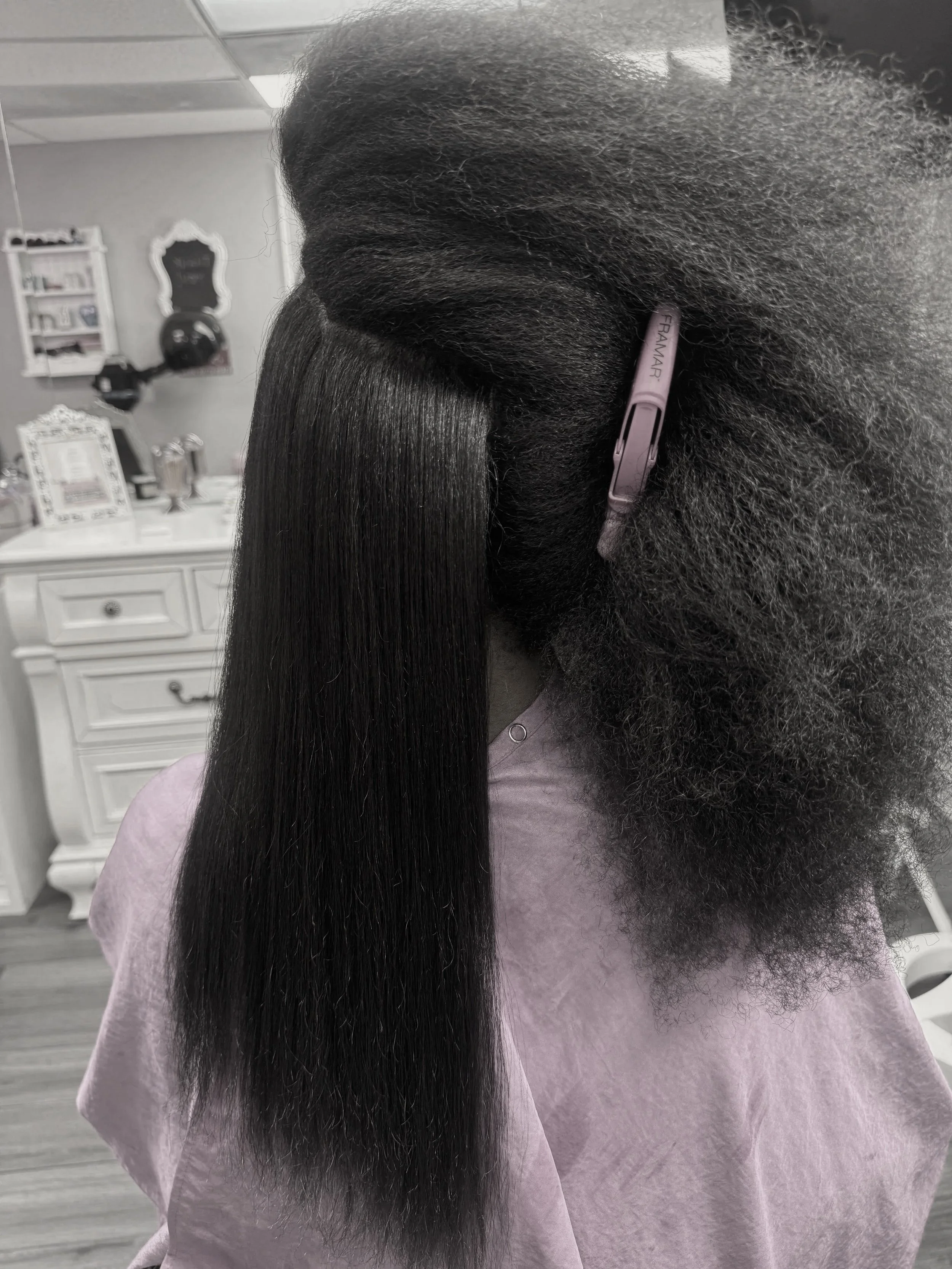 Clients are taught how to maintain their hair outside the salon while being encouraged to return for regular services to support continued growth. Every client—whether an adult, business professional, male, or young girl—receives personalized guidance to achieve and maintain healthy hair.